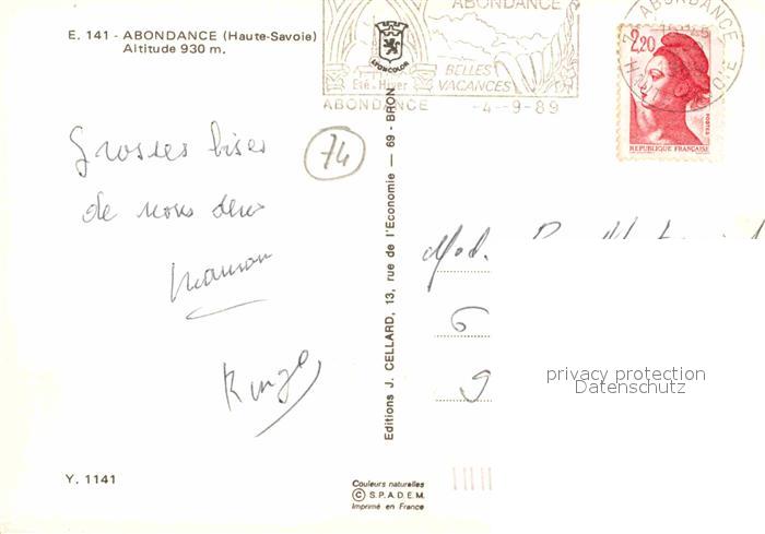 12712081 carte postale Abondance Ortsansicht mit Kirche Arkaden Alpenpanorama postalisch gelaufen Erhaltung siehe scans [FriedD77] KatCode: 11170074474001