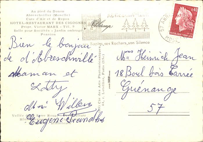 11324852 Abreschviller Moselle Vues partielles Hotel Restaurant des Cigognes KatCode 11170057557003