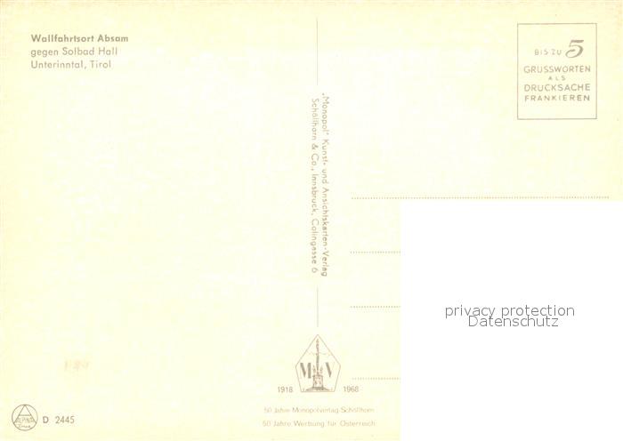 73601699 Absam mit Solbad Hall Unterinntal postalisch nicht gelaufen Erhaltung siehe scans [WerneD78] KatCode: 11390332070301