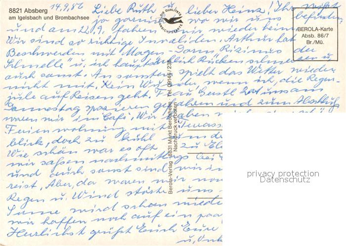 73671387 Absberg am Igelsbach und Brombachsee Segeln Windsurfen Kirche Schloss Strassenpartie postalisch nicht gelaufen Erhaltung siehe scans [FriedD77] KatCode: 11110009577111