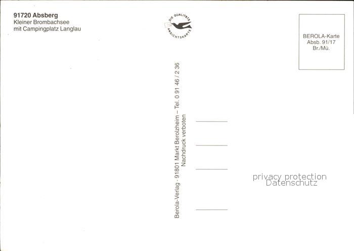 72414016 Absberg Kleiner Brombachsee mit Campingplatz Langlau Fliegeraufnahme postalisch nicht gelaufen Erhaltung siehe scans KatCode: 11110009577111