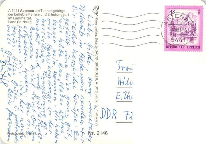 73904802 alte Postkarte Abtenau AT Panorama Ferien- und Erholungsort Lammertal Tennengebirge postalisch gelaufen Fliegeraufnahme Erhaltung siehe scans [FriedD77] KatCode: 11390323050201