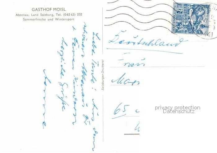 72901727 alte Postkarte Abtenau Gasthof Moisl Kirche Alpen postalisch gelaufen Erhaltung siehe scans [FriedD77] KatCode: 11390323050201