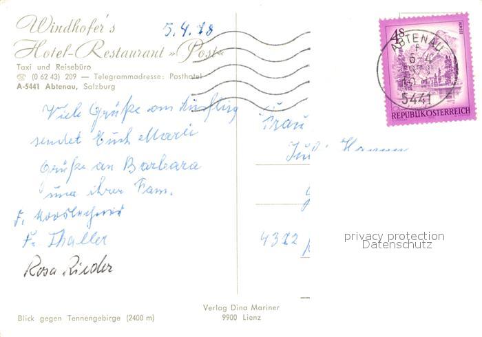 73478120 alte Postkarte Abtenau Hotel Restaurant Post postalisch gelaufen Erhaltung siehe scans [FriedD77] KatCode: 11390323050201