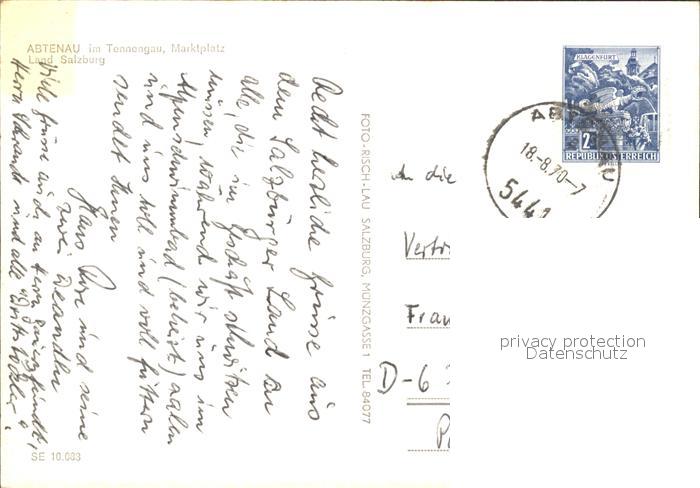 42923727 alte Postkarte Abtenau Marktplatz Kirche Brunnen postalisch gelaufen Erhaltung siehe scans [WerneD48] KatCode: 11390323050201