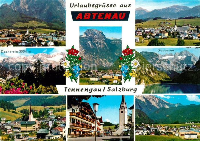 73029726 alte Postkarte Abtenau Panorama Dachstein Gosausee Dorfmotive postalisch gelaufen Erhaltung siehe scans [WerneD78] KatCode: 11390323050201