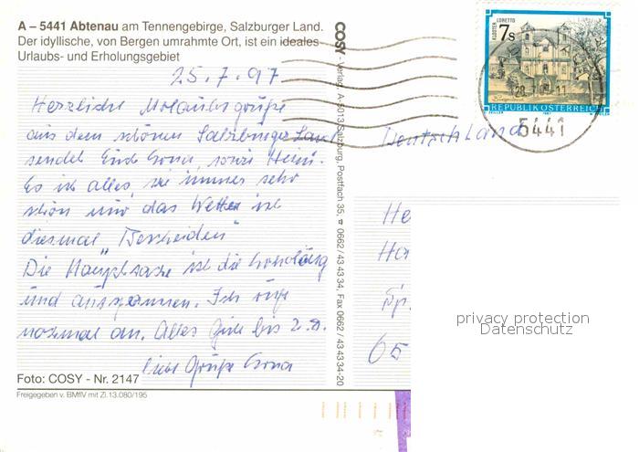 72835053 alte Postkarte Abtenau Panorama Tennengebirge Hoher Dachstein Bischofsmuetze postalisch gelaufen Erhaltung siehe scans [FriedD77] KatCode: 11390323050201