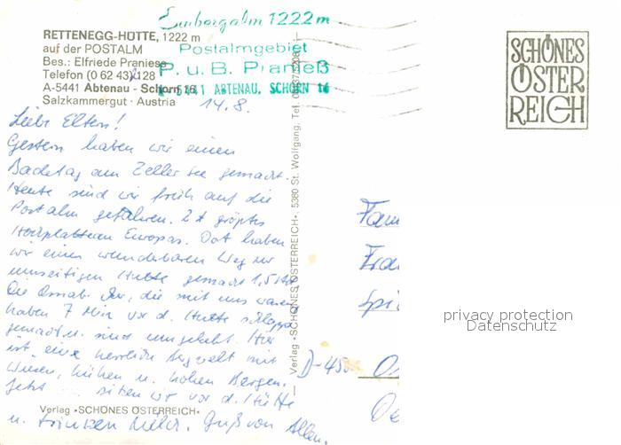 72884210 Abtenau Rettenegg Huette auf der Postalm postalisch nicht gelaufen Erhaltung siehe scans [WerneD78] KatCode: 11390323050201