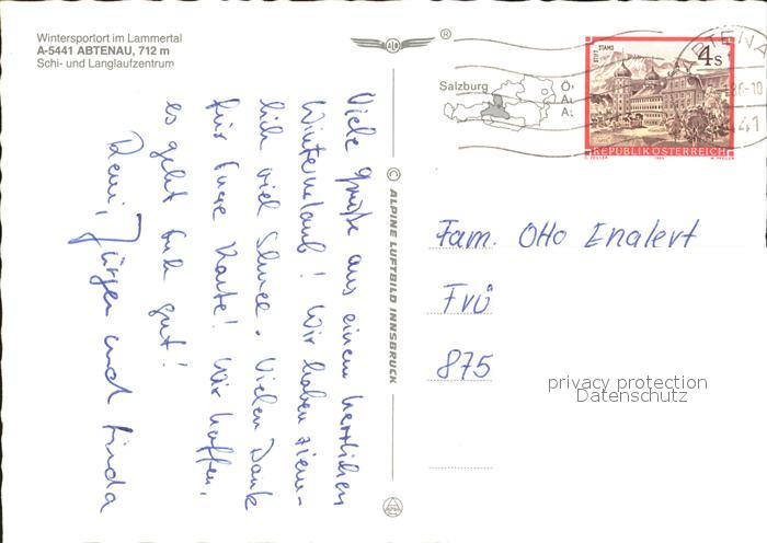 72240073 alte Postkarte Abtenau Wintersportort im Lammertal Alpenpanorama Fliegeraufnahme postalisch gelaufen Erhaltung siehe scans KatCode: 11390323050201