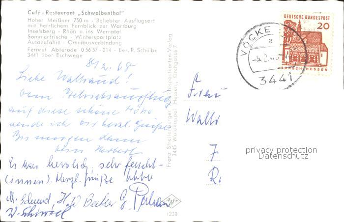 72291863 alte Postkarte Abterode Cafe Restaurant Schwalbenthal Hoher Meissner Winterpanorama postalisch gelaufen Erhaltung siehe scans KatCode: 11110006636008