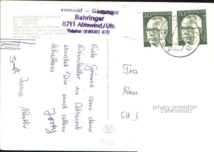 72555602 alte Postkarte Abtswind Weingut Behringer postalisch gelaufen Erhaltung siehe scans [AndreD76] KatCode: 11110009675111