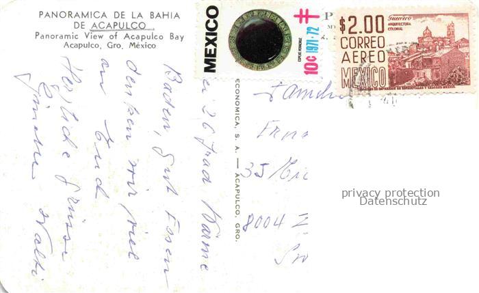 74117847 old postcard Acapulco Guerrero Mexico Panoramic view of Acapulco Bay postalisch gelaufen Erhaltung siehe scans [WerneD78] KatCode: 14120