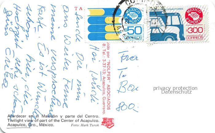 74117887 old postcard Acapulco Guerrero Mexico Twilight view of part of the Center of Acapulco postalisch gelaufen Erhaltung siehe scans [WerneD78] KatCode: 14120