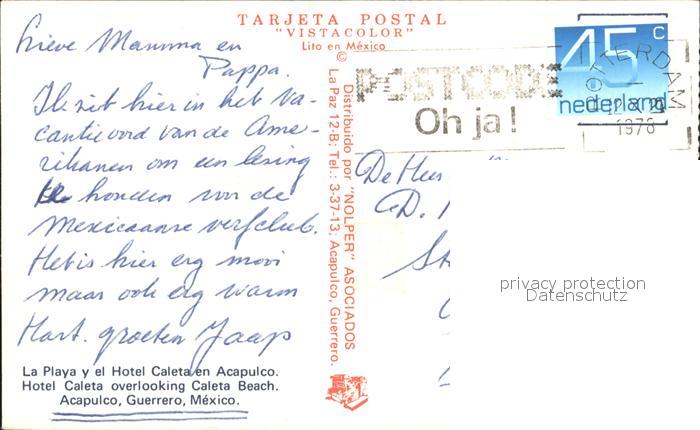 old postcard Acapulco Hotel Caleta Strand postalisch gelaufen Erhaltung siehe scans