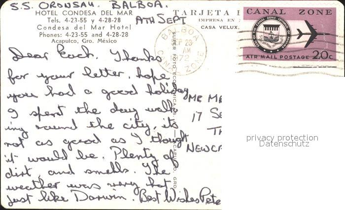 old postcard Acapulco Hotel Condesa del Mar vista aerea postalisch gelaufen Erhaltung siehe scans