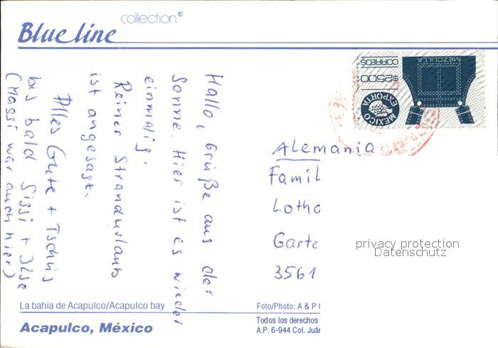 old postcard Acapulco La Bahia Panorama Bucht Blueline Collection postalisch gelaufen Erhaltung siehe scans