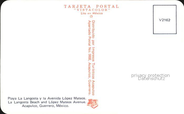 Acapulco Playa la Langosta Avenida Lopez Mateos postalisch nicht gelaufen Erhaltung siehe scans