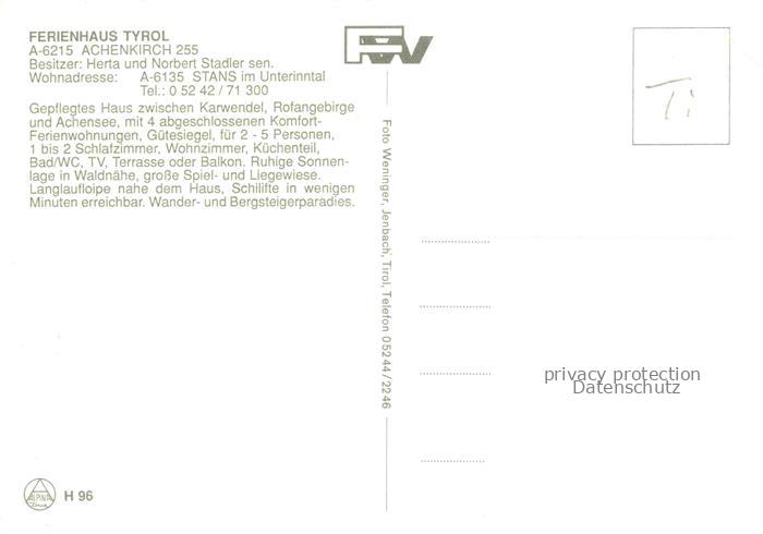 74141820 Achenkirch Achensee Tirol AT Ferienhaus Tyrol Terrasse Appartement Panorama postalisch nicht gelaufen Erhaltung siehe scans [WerneD78] KatCode: 11390335070901