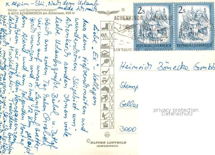 73315329 alte Postkarte Achenkirch am Achensee Fliegeraufnahme Skigebiet postalisch gelaufen Erhaltung siehe scans [LiesaD40] KatCode: 11390335070901
