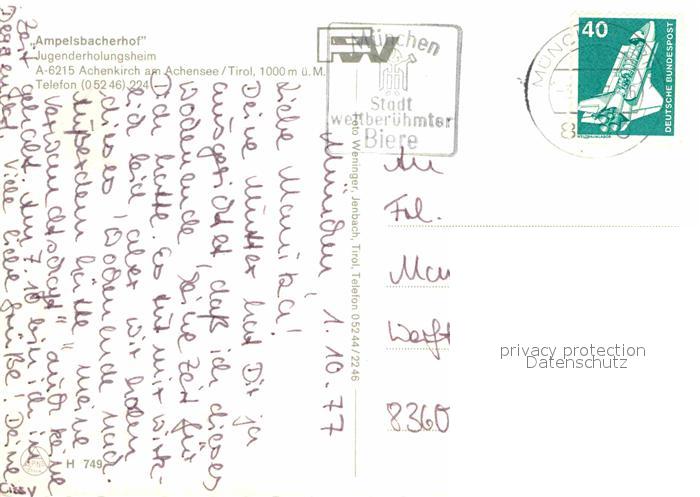 72667890 alte Postkarte Achenkirch Ampelsbacherhof postalisch gelaufen Erhaltung siehe scans [WerneD78] KatCode: 11390335070901
