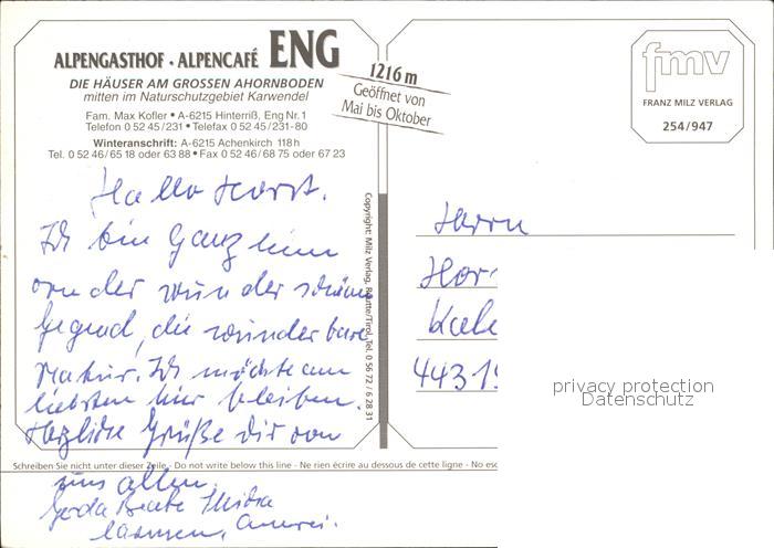 72583421 Achenkirch En-Almen im Tirol Karwendel AlpenCafe Eng postalisch nicht gelaufen Erhaltung siehe scans [LiesaD40] KatCode: 11390335070901