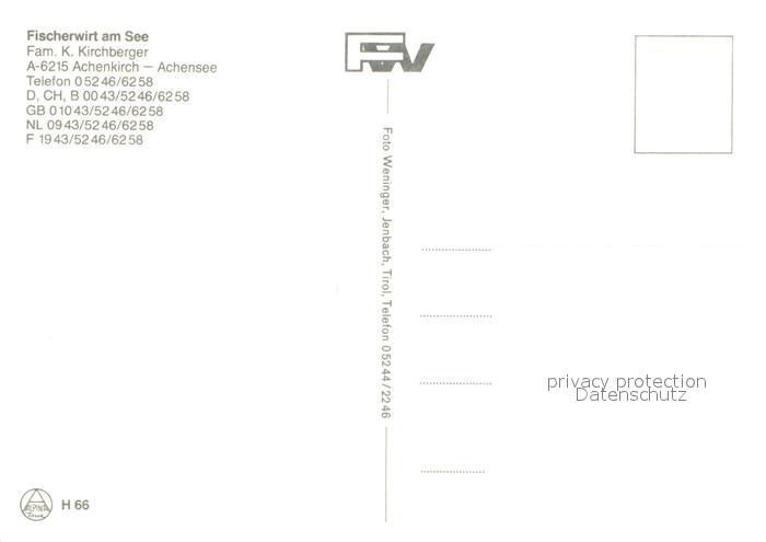 73364859 Achenkirch Fischerwirt am Achensee postalisch nicht gelaufen Erhaltung siehe scans [WerneD78] KatCode: 11390335070901