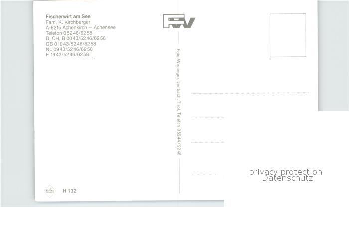 72503760 Achenkirch Fischerwirt am See postalisch nicht gelaufen Erhaltung siehe scans KatCode: 11390335070901