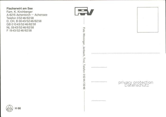 72492161 Achenkirch Fischerwirt am See postalisch nicht gelaufen Erhaltung siehe scans KatCode: 11390335070901