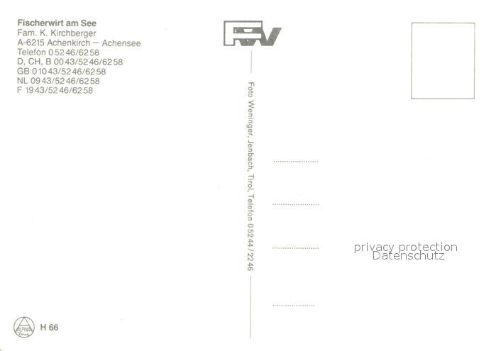 73224301 Achenkirch Fischerwirt am See Alpenpanorama postalisch nicht gelaufen Erhaltung siehe scans [FriedD77] KatCode: 11390335070901