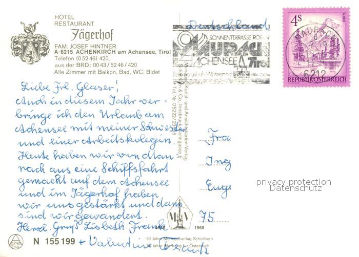 13189393 alte Postkarte Achenkirch Hotel-Restaurant Jaegerhof postalisch gelaufen Erhaltung siehe scans [PaolaD17] KatCode: 11390335070901