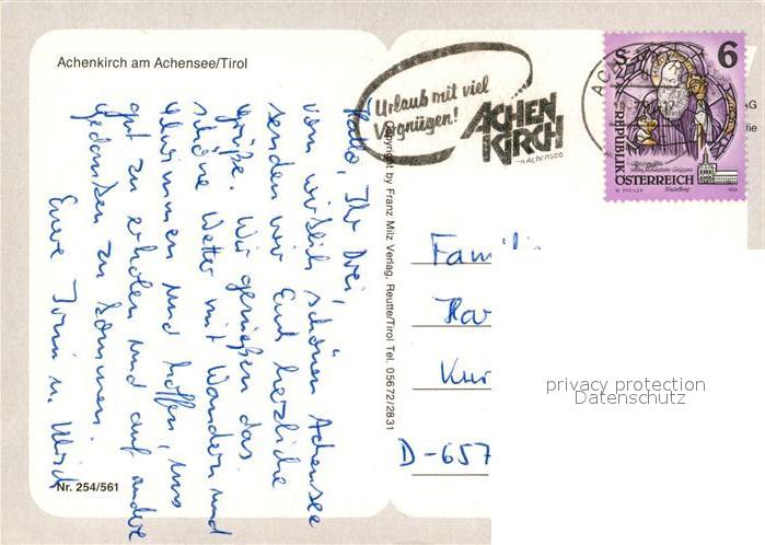 73315333 alte Postkarte Achenkirch Kirche Achensee Badestelle postalisch gelaufen Erhaltung siehe scans [LiesaD40] KatCode: 11390335070901