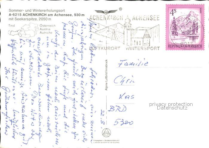 72495877 alte Postkarte Achenkirch mit Seekarspitze Fliegeraufnahme postalisch gelaufen Erhaltung siehe scans KatCode: 11390335070901