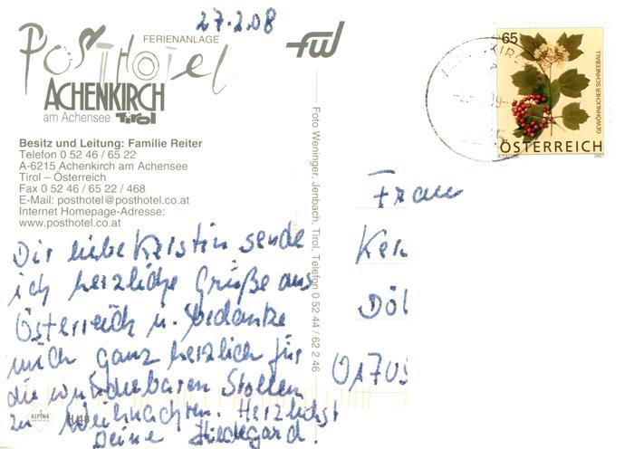 73904795 alte Postkarte Achenkirch Tirol AT Posthotel Ferienanlage Winterpanorama postalisch gelaufen Erhaltung siehe scans [FriedD77] KatCode: 11390335070901