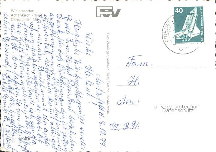 72400213 alte Postkarte Achenkirch Wintersportort Christlumlift Winterlandschaft postalisch gelaufen Erhaltung siehe scans KatCode: 11390335070901