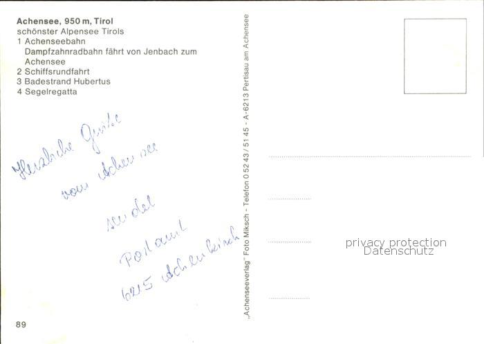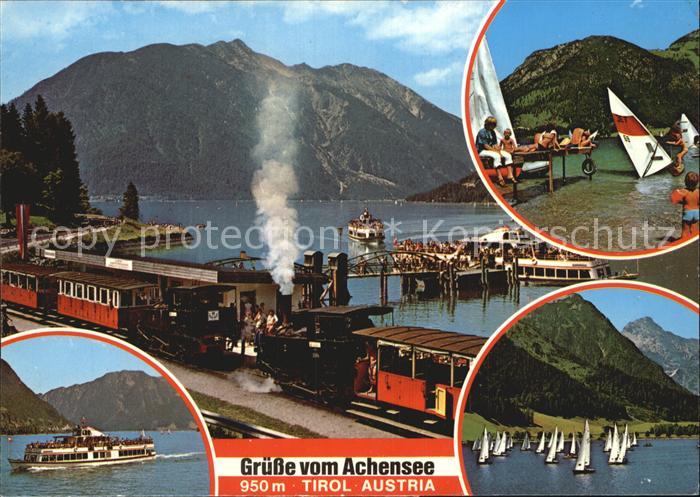 72490553 Achensee Achenseebahn Schiffsrundfahrt Badestrand Hubertus Segelregatta postalisch nicht gelaufen Erhaltung siehe scans KatCode: 11390335070907