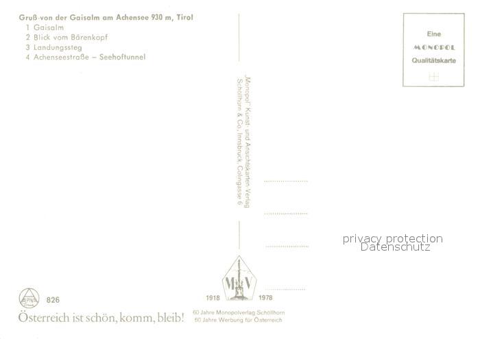 73629014 Achensee Gaisalm Baerenkopfblick Landungssteg Achenseestrasse Seehoftunnel postalisch nicht gelaufen Erhaltung siehe scans [WerneD78] KatCode: 11390335070907