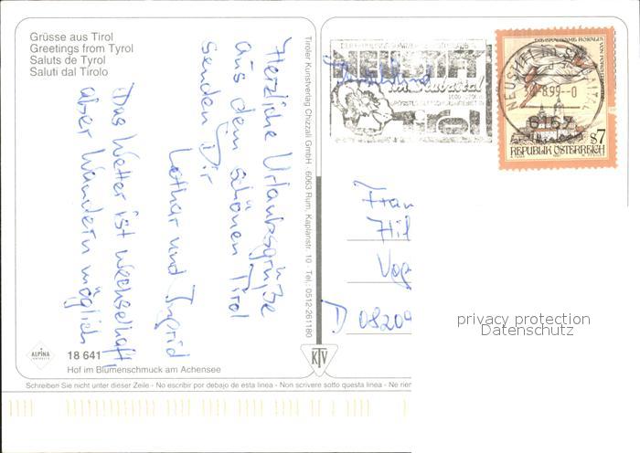 72376576 alte Postkarte Achensee Hof im Blumenschmuck postalisch gelaufen Erhaltung siehe scans KatCode: 11390335070907