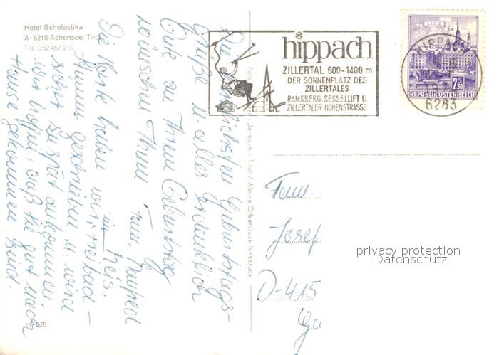 72966435 alte Postkarte Achensee Hotel Scholastika postalisch gelaufen Erhaltung siehe scans [NatalD47] KatCode: 11390335070907