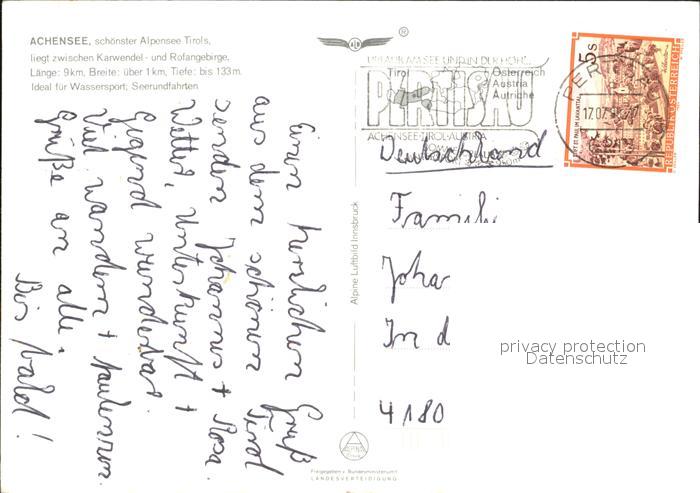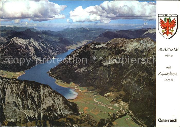 72490554 alte Postkarte Achensee mit Rofangebirge Fliegeraufnahme postalisch gelaufen Erhaltung siehe scans KatCode: 11390335070907