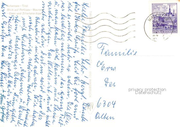 73272071 alte Postkarte Achensee Panorama Blick auf Pertisau Maurach Eben Zillertaler Alpen postalisch gelaufen Erhaltung siehe scans [FriedD77] KatCode: 11390335070907