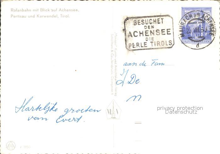 71899479 alte Postkarte Achensee Rofanbahn Bergbahn Blick auf Pertisau und Karwendel Sommerpanorama postalisch gelaufen Erhaltung siehe scans KatCode: 11390335070907