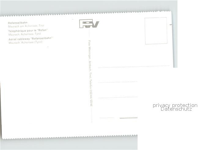 71920176 Achensee Rofanseilbahn postalisch nicht gelaufen Erhaltung siehe scans KatCode: 11390335070907