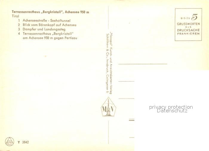 73161551 Achensee Terrassenrasthaus Bergkristall Seehoftunnel Dampfer Landungssteg postalisch nicht gelaufen Erhaltung siehe scans [KathaD81] KatCode: 11390335070907