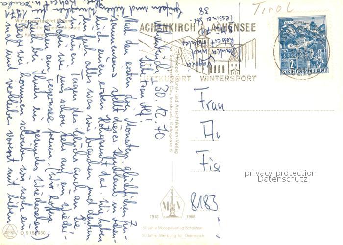 73363545 alte Postkarte Achensee Wintersportgebiet Rofan Erfurterhuette gegen Achensee und Karwendel Alpenpanorama postalisch gelaufen Erhaltung siehe scans [FriedD77] KatCode: 11390335070907