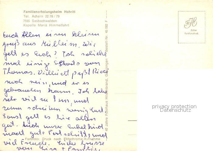 73169152 Achern Baden Familienerholungsheim Hohritt postalisch nicht gelaufen Erhaltung siehe scans [KathaD81] KatCode: 11110008317001
