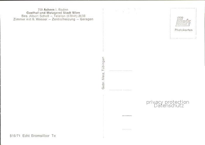 41768127 Achern Baden Gasthof Metzgerei Stadt Wien postalisch nicht gelaufen Erhaltung siehe scans KatCode: 11110008317001