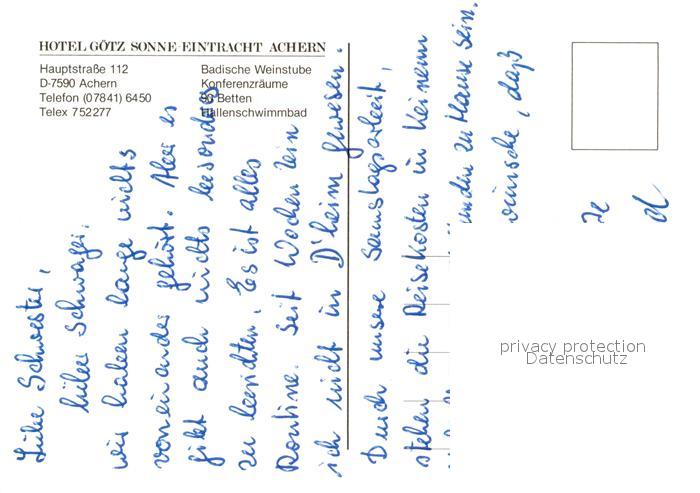 73108216 Achern Baden Hotel Goetz Sonne Eintracht postalisch nicht gelaufen Erhaltung siehe scans [KathaD81] KatCode: 11110008317001