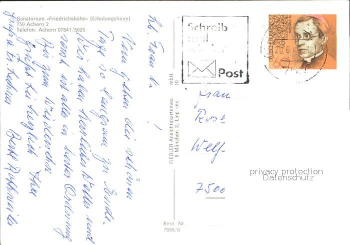 72064874 alte Postkarte Achern Baden Sanatorium Friedrichshoehe Erholungsheim postalisch gelaufen Erhaltung siehe scans KatCode: 11110008317001