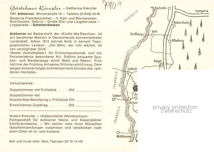 73864149 Achkarren Gaestehaus Kienzler Bar Gaststube Schwimmbad postalisch nicht gelaufen Werbekarte (keine Postkarte) Erhaltung siehe scans [WerneD78] KatCode: 11110008315133