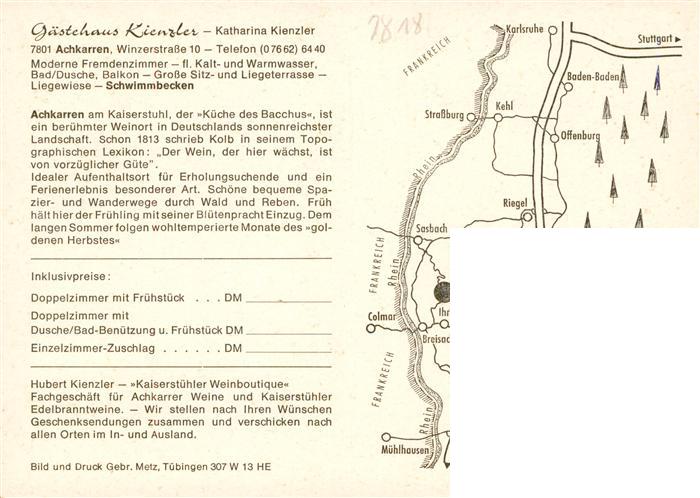 73929116 Achkarren Gaestehaus Kienzler Bar Gaststube Schwimmbad postalisch nicht gelaufen Werbekarte (keine Postkarte) Erhaltung siehe scans [WerneD78] KatCode: 11110008315133